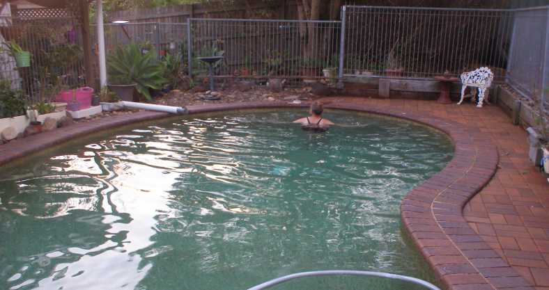 Making use of the pool. Sandra uses the pool for exercises as well as relaxation. It’s good for her back problems.
