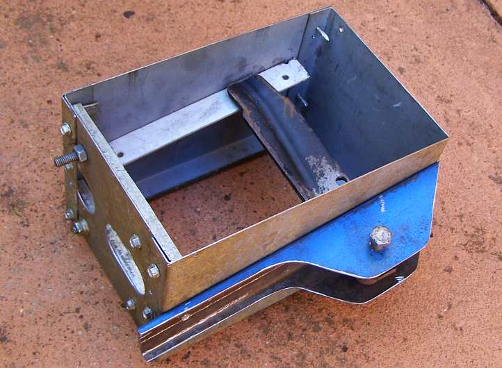 Conversion box. Still with a lot of work to go into it, this is how the ‘conversion box’ started out – held together with Tek screws – with the apertures in the front for the master cylinder and the pull-rod from the bell-crank.