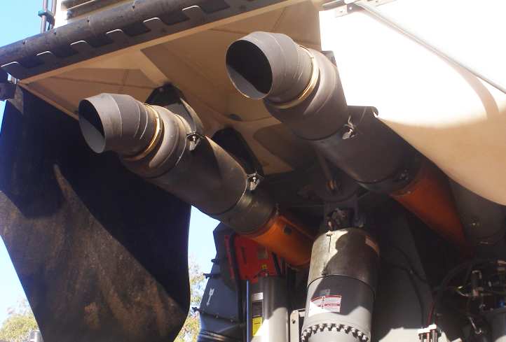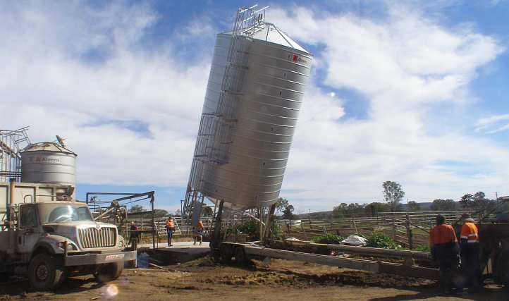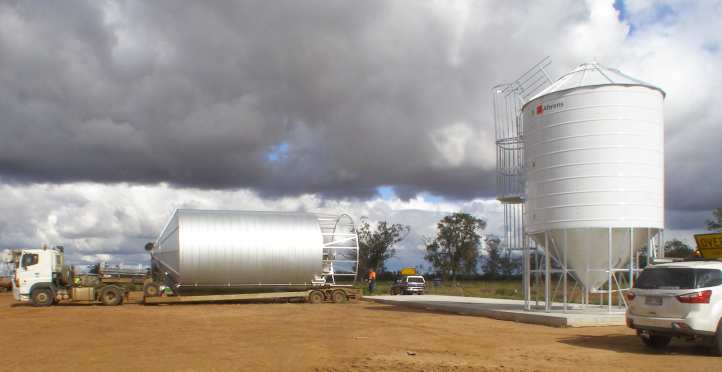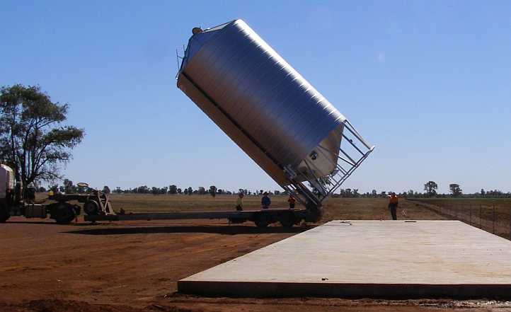 This job was another of the 5-metre wide silos and was going to a farm just across the border out of Boggabilla. There was a lot of mud about, but it was just about dry enough to get the truck in and stand the silo on the waiting concrete pad…
