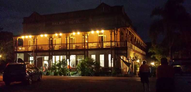Ravenswood Hotel. It was dark when we got there and the pub lit up handsomely. The mean was just what we needed after a long day.