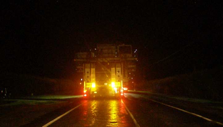 The railway people had to be contacted to arrange for them to turn off the power on that section of the line (covering tens of miles, I understand) and the platform’s airbags deflated to bring the height of the load down. The load had been measured at 5.4 metres, the signs on the level crossing said that clearance was a mere 5.2 metres, so it was still going to be close.