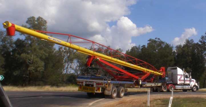 The next day I was off to McAlister, just out of Toowoomba, for a job to Talwood. This one was a bit different, an auger that swayed around in the breeze as it was being hauled along.