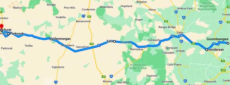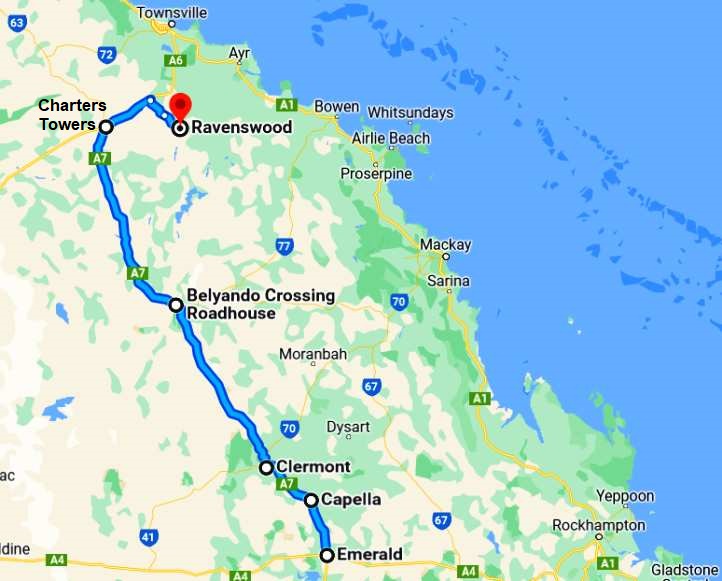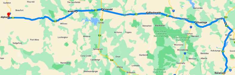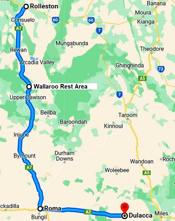 So we had to take the Capricorn Highway to Blackwater, then head down the direct road from there to Rolleston: