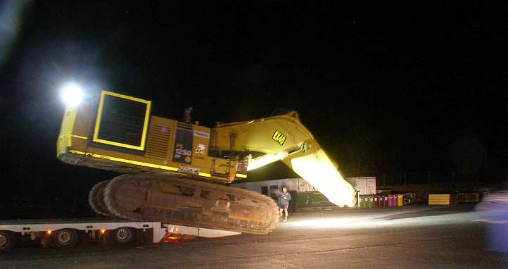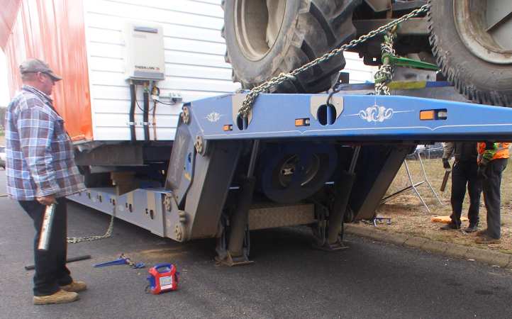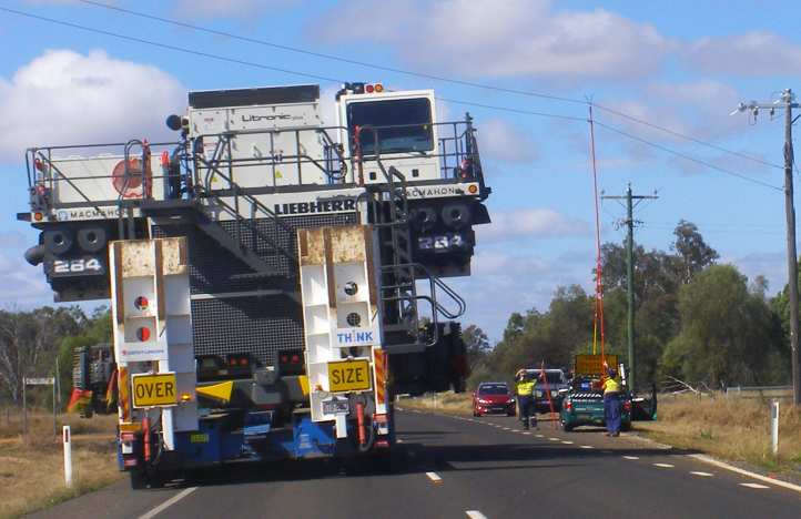 It was just over 500 miles for the job, it would take most of two days in the middle of June. The first obstacle we had to face was that the platform was too wide for the roadworks on the road we’d normally take from Emerald to Rolleston.
