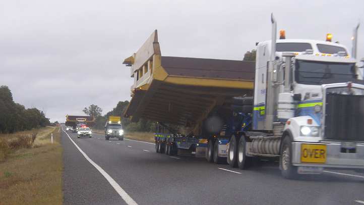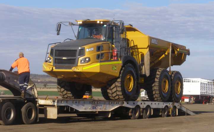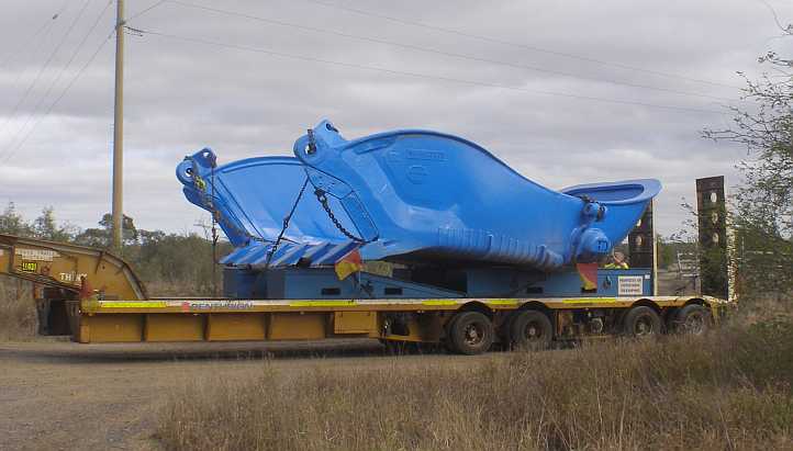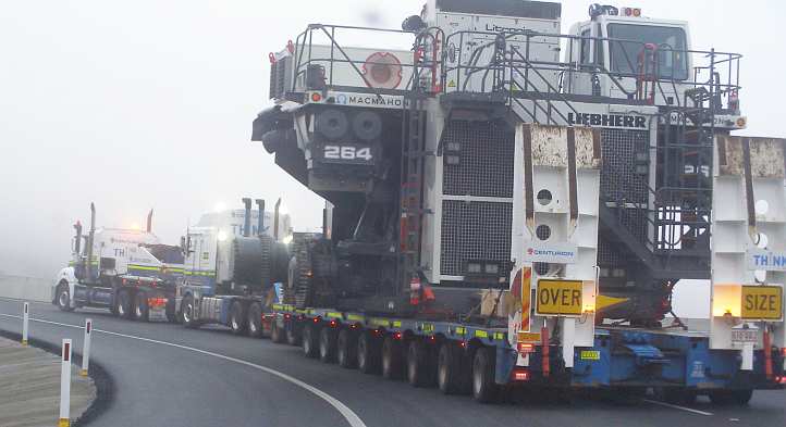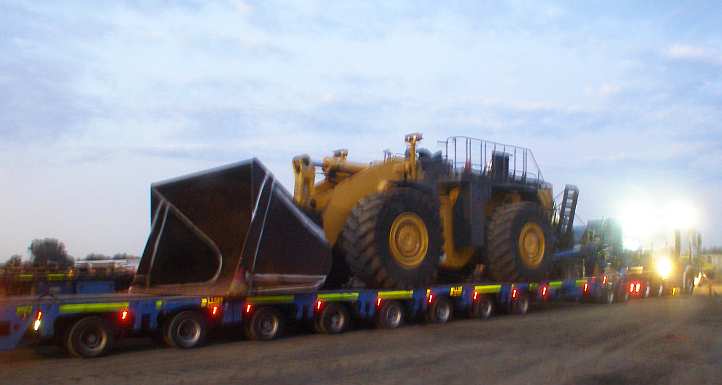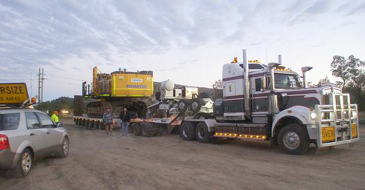 Big machine. This machine with its huge bucket sits atop an 8-row platform being hauled by a Mercedes prime mover. The outside wheels on the platform were set at 4.2 metres. It was an early morning start and we’d find parts of the journey a bit of an adventure.