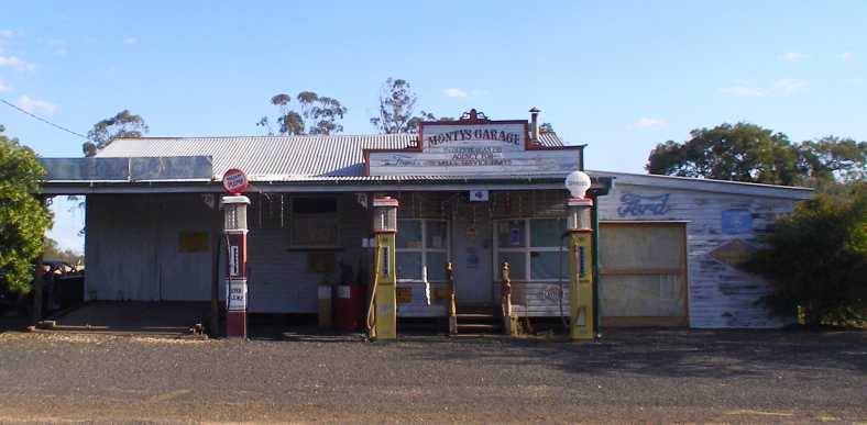Monty’s Garage. Probably more interesting, but definitely all shut up, the old-style fuel bowsers hark back to the thirties, forties and fifties.