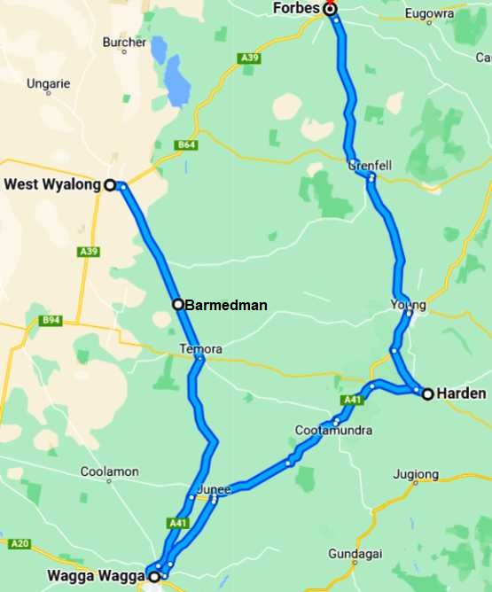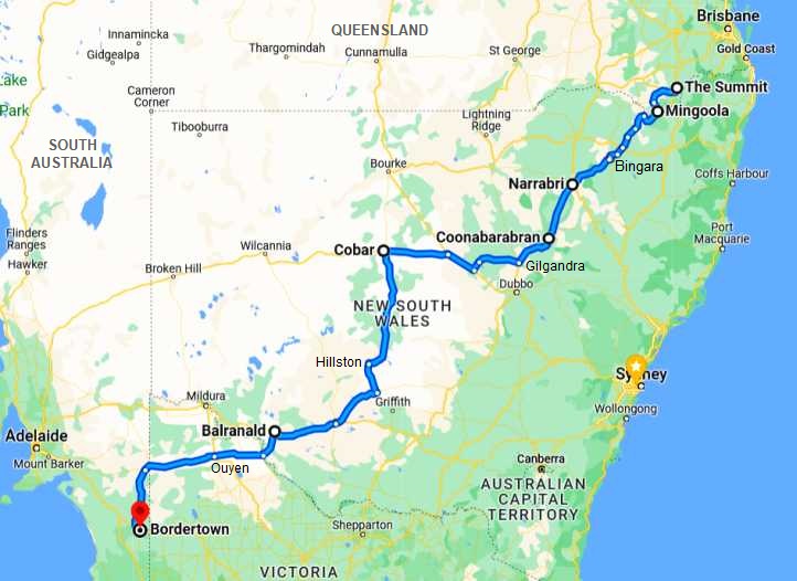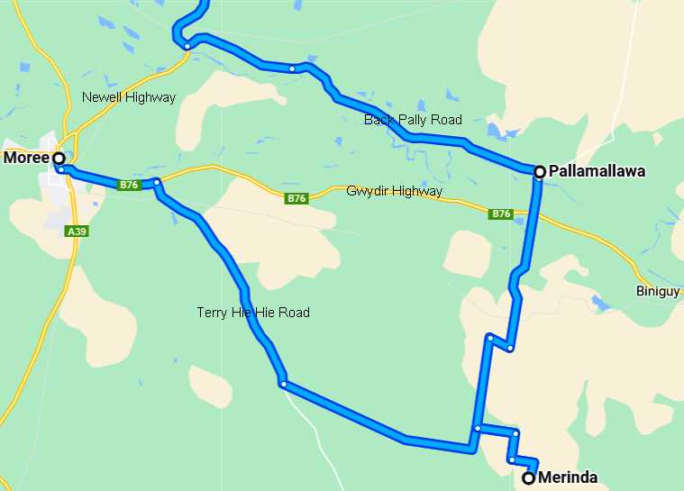 We put in just over 1,000kms on the second day, travelling through Goolgowi and Condobolin then through to the Newell Highway to finish up at Boggabilla.