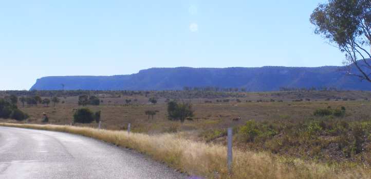 Sightseeing. The landforms in which the Isla Gorge resides stand out in the distance as we head into the morning.