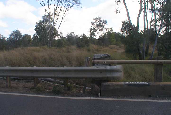 This picture, on the road from Rolleston to Moura, shows that the road is at a normal (if skimpy) two-lane width, but that the underpinnings of the outer edges are not as secure as the centre: