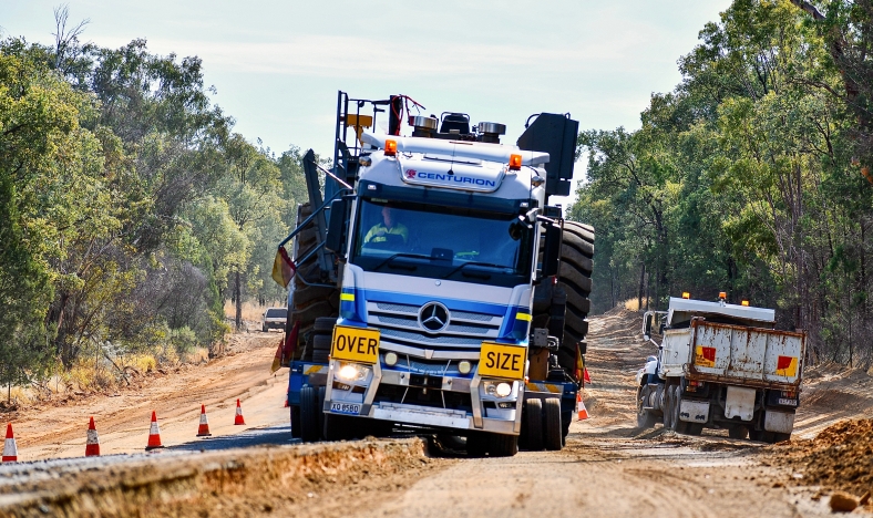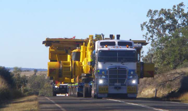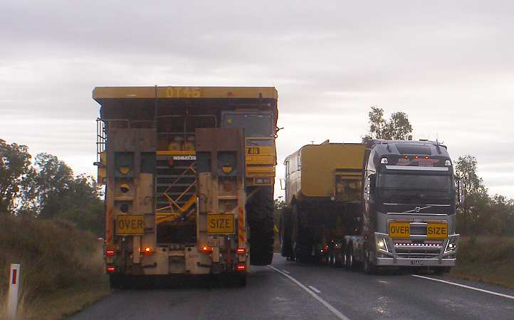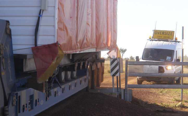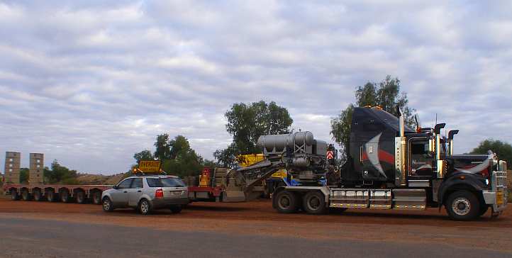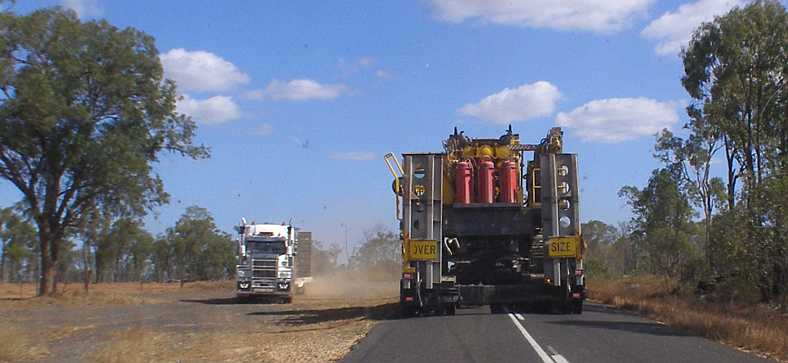But I did say something about obstacles and there was another one coming. About 100kms out of Rolleston the Carnarvon Highway climbs steeply up a hill known as ‘Wallaroo’, and with sections of Armco railing and a cutting or two, it’s presents something of a challenge to pilots of loads like this one – 5.4 metres wide.