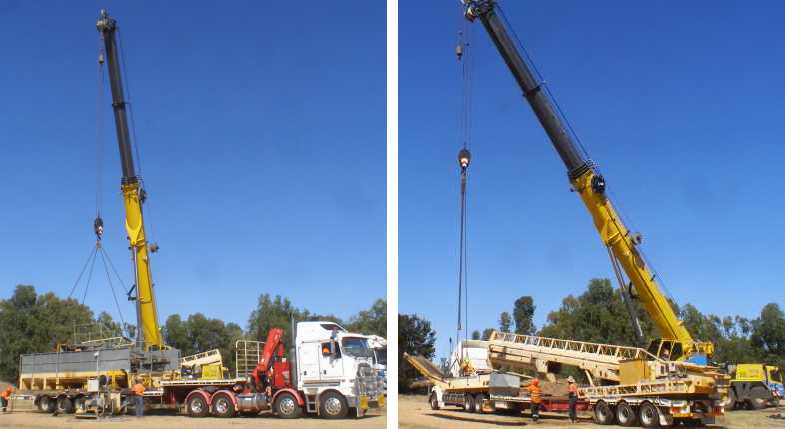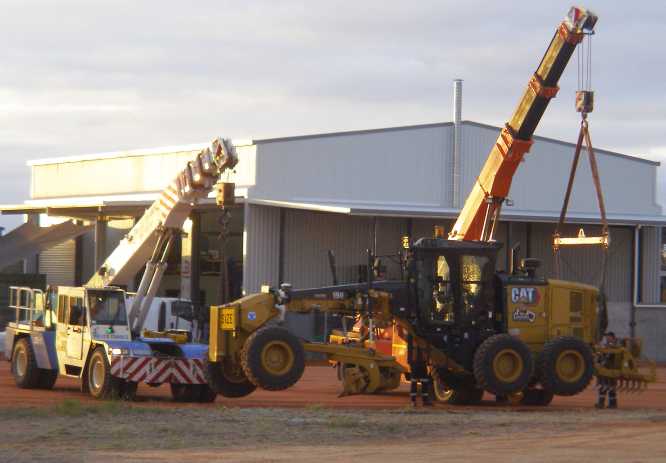 Co-operation. With a machine lifting each side of the auger, the truck was able to drive out and leave them to lower it to the ground.