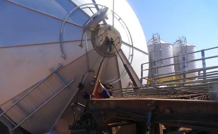 Larger silo. This delivery was a larger one than the one previously erected. But another of the larger ones was standing by to be put in place after having been delivered when there was too much mud to get the truck into situ.