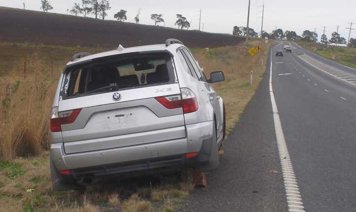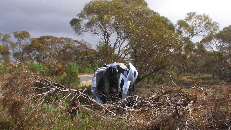 …what had somehow run off a relatively straight road and knocked itself about badly on the local scrubby trees.