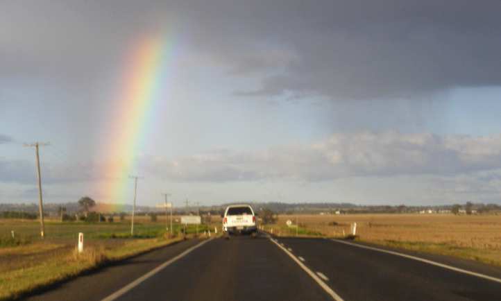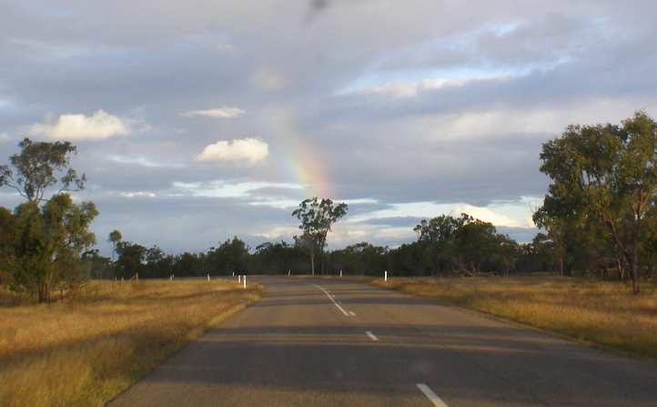 Rainbow and rain. The drive to Emerald took a day, but that’s pretty normal. It really doesn’t matter whether you drive to the distant start of a job or go home from the distant finish.