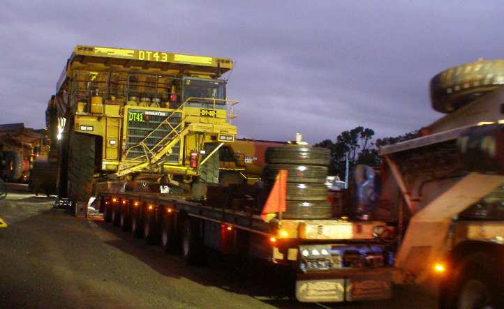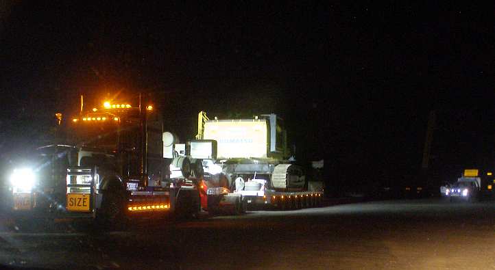 Triumph. The three pilot vehicles and the truck lined up just outside the mine. The job was done, the first job for this contractor in some long time.