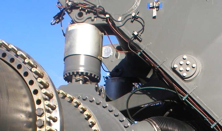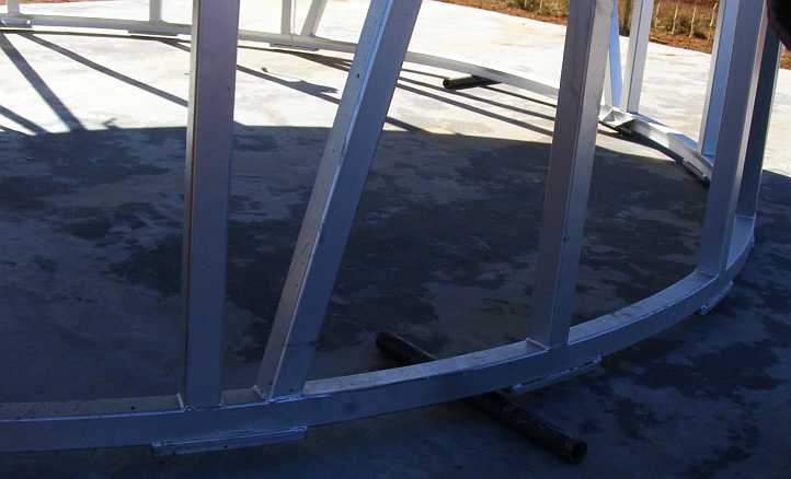 Lifting the silo. The hydraulic rams do their job of lifting the silo into position, it would soon be bolted down and ready for use.