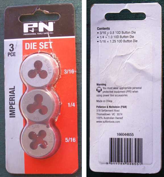 Die nut botch-up. The packet says they’re Imperial on the front, Metric on the back. The metric thread size would be close to UNF, but they were in fact UNC.