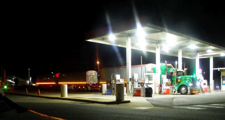All night service. This road train was just one of a string of trucks which kept calling in that night to refuel. It was a busy place and showed clearly the truth in the saying, ‘Without trucks Australia stops!’