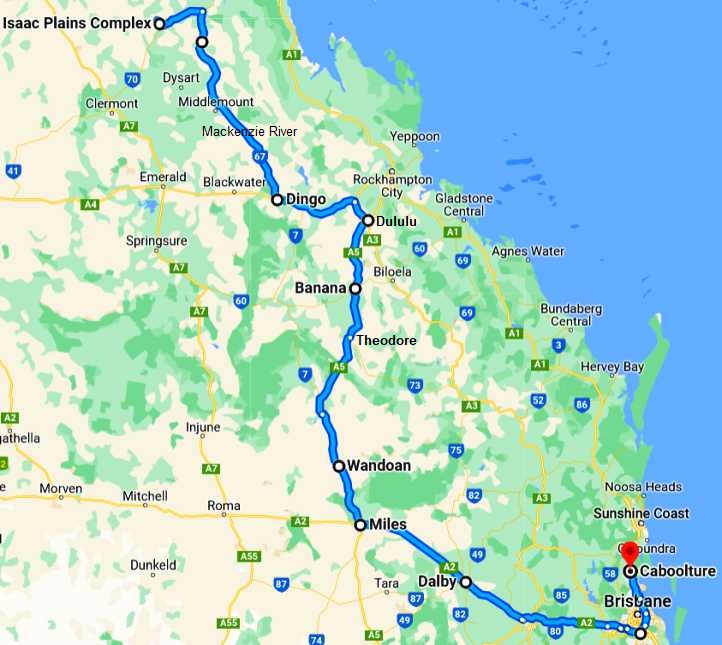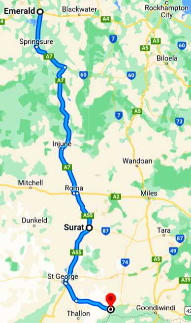 From Emerald, already 500 miles from home, our path would take us a further 350 miles along this path: