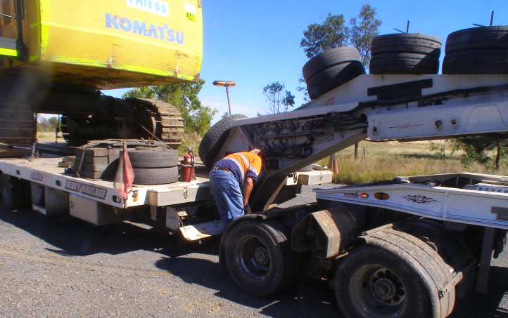 But it wasn’t all that simple. The truck operator had been out of business for a while and his trailer’s tyres started giving trouble with this heavy load.