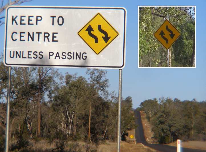 Centre safer. Along a stretch of over 15kms, these signs direct traffic to stay on the centre of the road while they’re able to do so.