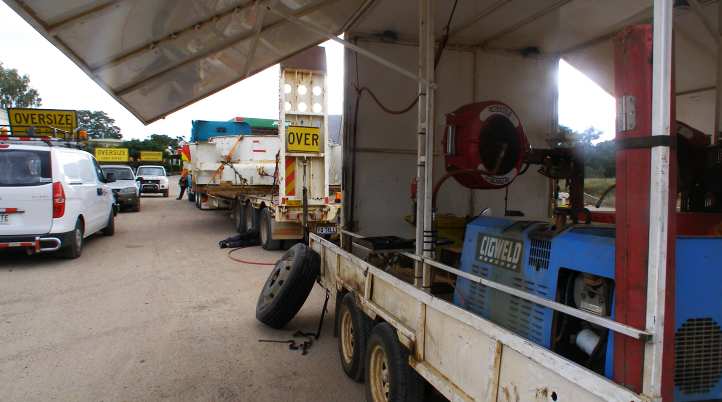 At Charters Towers it was finally established that all the trailer tyres had been under-inflated – 60psi instead of 100psi. A number of new tyres were purchased and fitted by a local dealer who, fortunately, had the right size in stock.