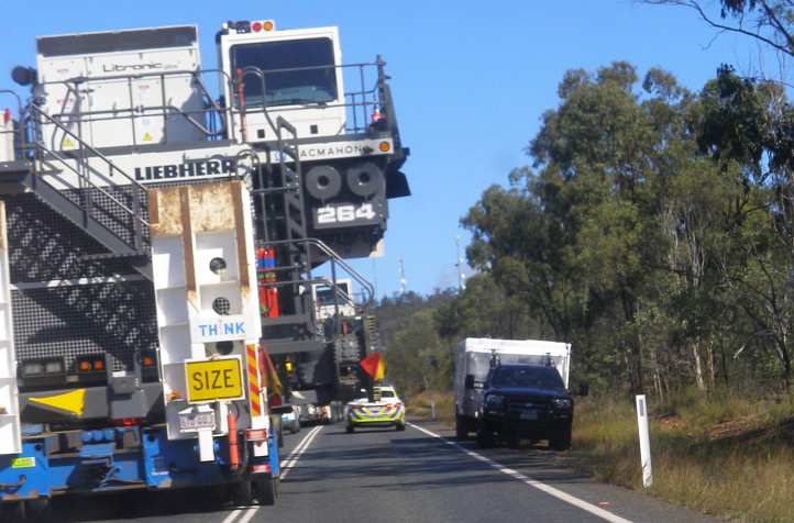 …and the next morning I refuelled at Bluff. Driving along towards Blackwater we got advice that there was some roadworks going on there, but of more immediate importance was the sight of a Franna crane bouncing along the roadway in front of us. These things are an absolute danger to everyone with their tyres being the only suspension and they are limited to 80kmh.