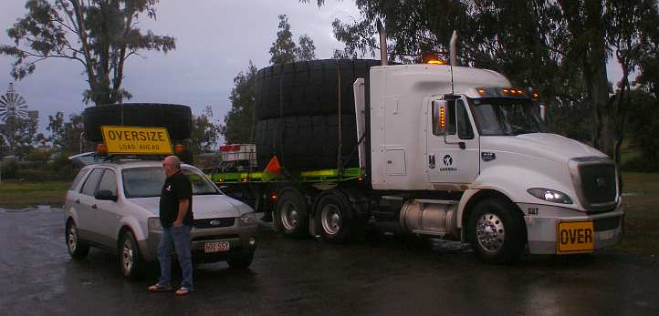 After some hunting around I found the other pilots and the National Heavy Haulage truck and we set out on our 1180km journey. Towards Nebo, then South to Dingo, stopping off for a break at the Mackenzie River Rest Area.