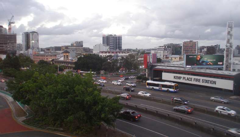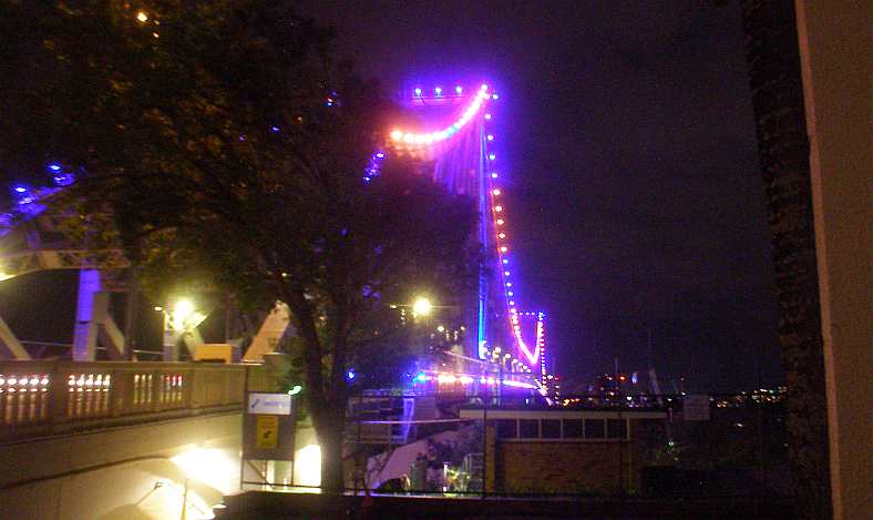 Different view. The bustle of the city was all around the motel, this being the approach to the Storey Bridge as seen from the window of my room.