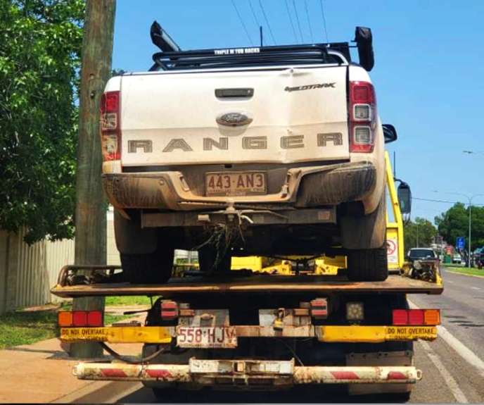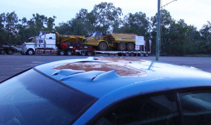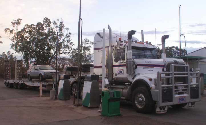 Free ride. My car was strapped on the back of the truck, saving fuel, while Mick refuelled at Duaringa.