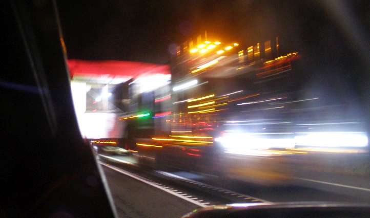 We were delayed somewhat (note the sharp shadows on the picture) and as it’s a fairly sparsely populated area I volunteered to go and get some burgers for the truck drivers before the shop shut.