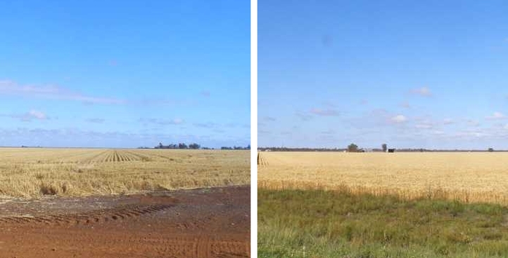 Remembering that we’d had a lot of rain, these crops near Dalby told a story, for while the paddock on the left…