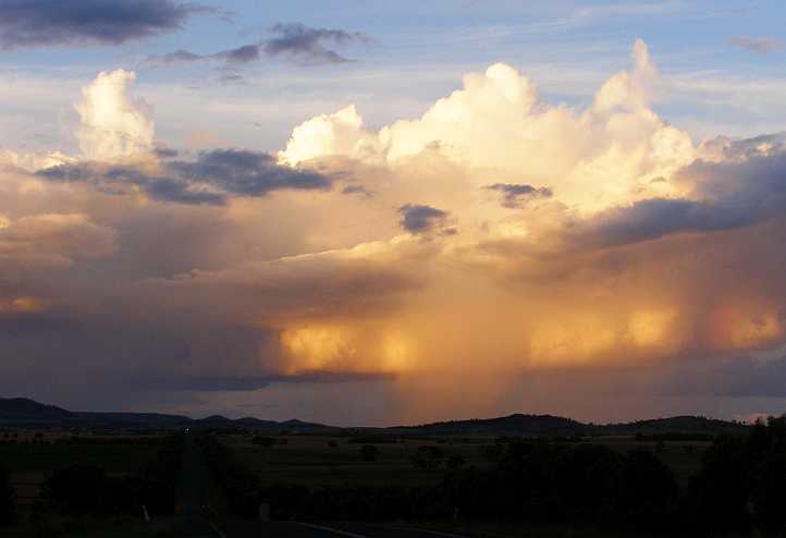 Sun and cloud. I was pressing on after stopping at Emerald, but I hesitated to get this shot of the clouds lit by the lowering sun near Carnarvon Gorge.