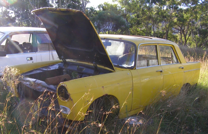 Towing cars with ropes isn’t legal, nor is towing unregistered cars, but we couldn’t do anything about registering it anyway. I let him use my (legal) bar for the tow job, this being something I’d built for towing Peugeots about twenty years earlier, it was chained to the ‘roo bar and off he went.