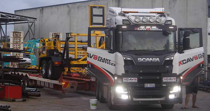 Scania loaded. The Xcav8 trucks are all European, unlike the more common Kenworths with whom I was used to working.