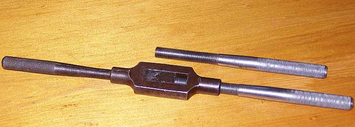 The original thread on the handle was ⅜” UNF, but it had rusted/won out so the handle was simply gone when I got the wrench. I tapped that out to 7/16” UNF and made two handles to suit. One I drilled internally to ¼” to go over the thread of the internal moving section which locks in the taps. The other I drilled to 3/16” ready to be tapped with the left hand thread if I could acquire a tap to do that job.