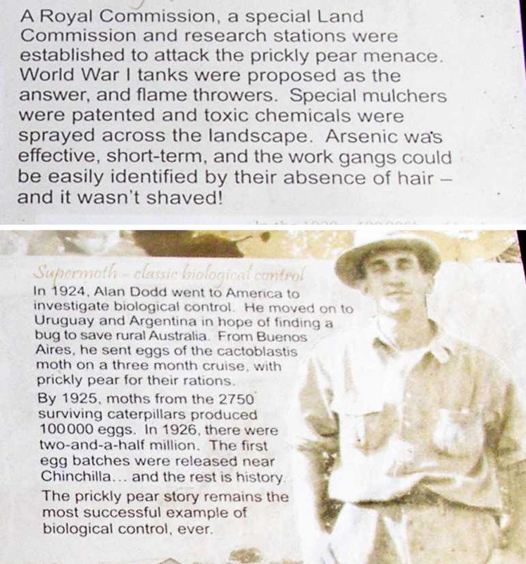 …and I was well aware of the story of how the cactoblastis beetle had been imported to deal with the Prickly Pear problem, the story being well told on plaques outside the hall: