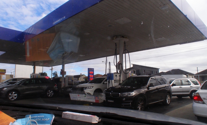 Cheapest fuel. This service station at South Granville had its fuel priced about 20c a litre lower than many around so it was worth getting in the queue to put almost 69 litres in.