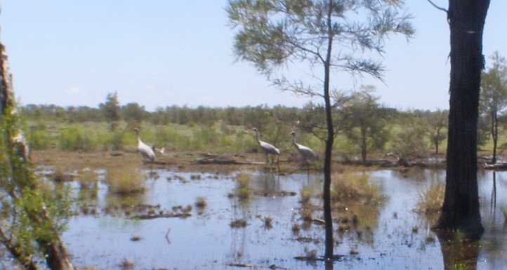 As I drove away I got a couple of pics of the water lying on the side of the road – and off into the bush. And then some birds crossed the road in front of me and had me intrigued: