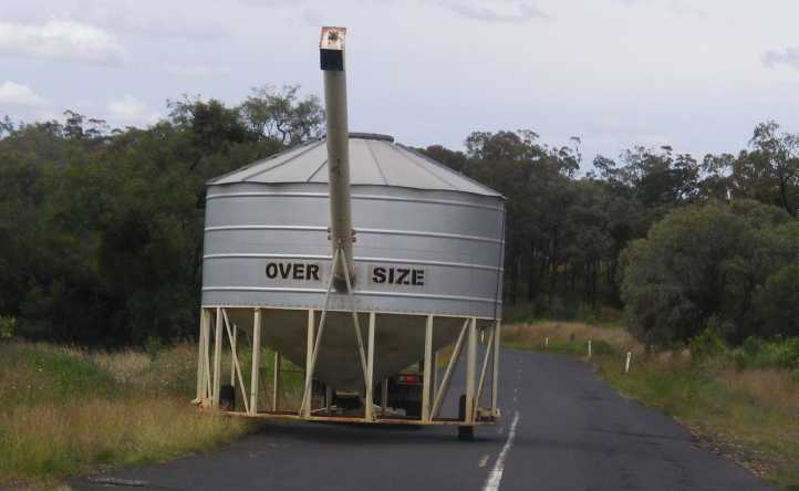 I spent the night there and then went on to Max’s place before heading across towards Gilgandra. I slept the (cold) night at Mendooran and in the morning was in place to watch as a huge crane lifted the grain stacker onto the truck.