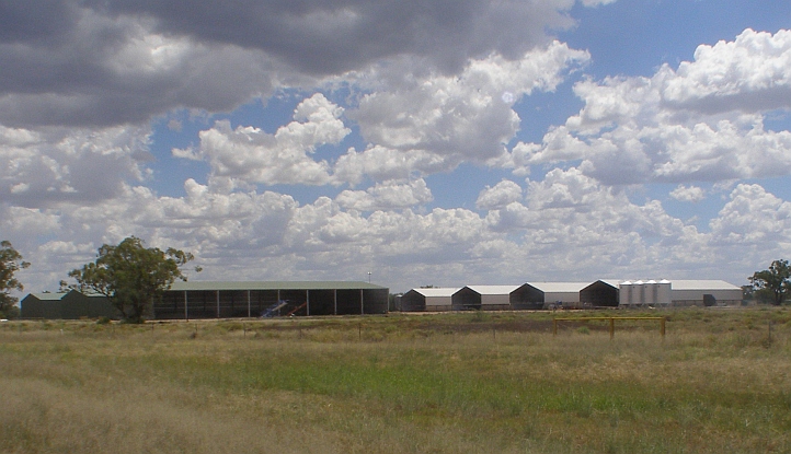 Prosperous. The chaser bin is unloaded at the farm near Mungindi, which has huge grain storages and much more equipment. Tens of thousands of acres were about to be harvested.