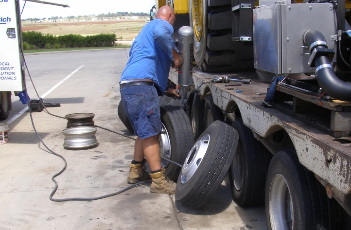 …but shortly after going through Barcaldine the truck suffered a flat tyre. I gave the driver a bit of a hand to put the flexible cover back over the dolly’s tyres and then we drove on.