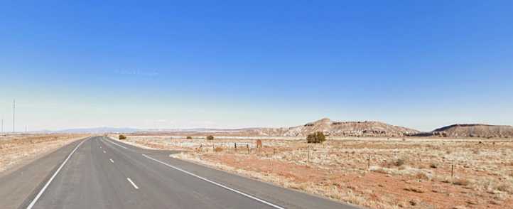 ...but the admission charge was high and there was a lot of walking to be done to see the full extent of the depression. We opted to keep going as the Grand Canyon was our main goal on this day. The Interstate was mostly straight and the sign in this pic...