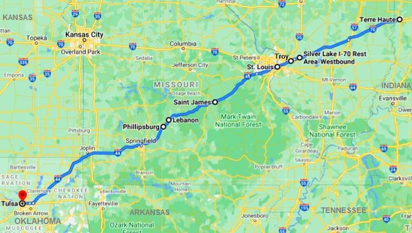 It was an early start. The Sunbeam kettle had filled the Thermos, I cranked the truck over and moved it forward from the tree at the side of the carpark that provided security for what was in the back. Loaded up, we headed down the road ready for a long day at our intended 55-60mph cruising speed. The I70 to St Louis, then the I44 to Tulsa was our goal, but we wanted to see anything that we could easily reach as we went.