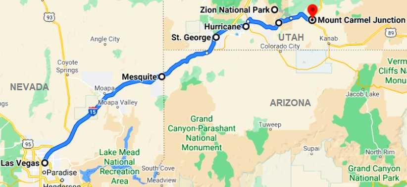 We were yet to learn what was to become the balance of our trip that day. From Mesquite we cut across a corner of Arizona and into Utah, as shown on the map above, the day was warming up as we stroked the slant 6 across the flat desert of north-west Arizona.