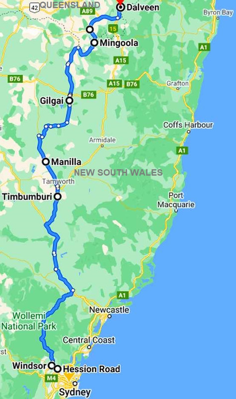 I chose a path which enabled me to be on secondary roads most of the way. I had to pick up the Dodge at Hession Road, Rouse Hill and fuel up at Windsor...