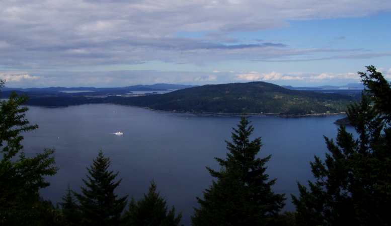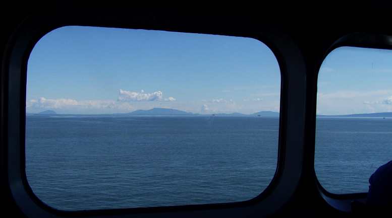 Shipboard viewing. We were working our way up the channel to Nanaimo for almost two hours, the other islands forming a backdrop to the waters which delivered the sight of dolphins at play and a whale at one point.