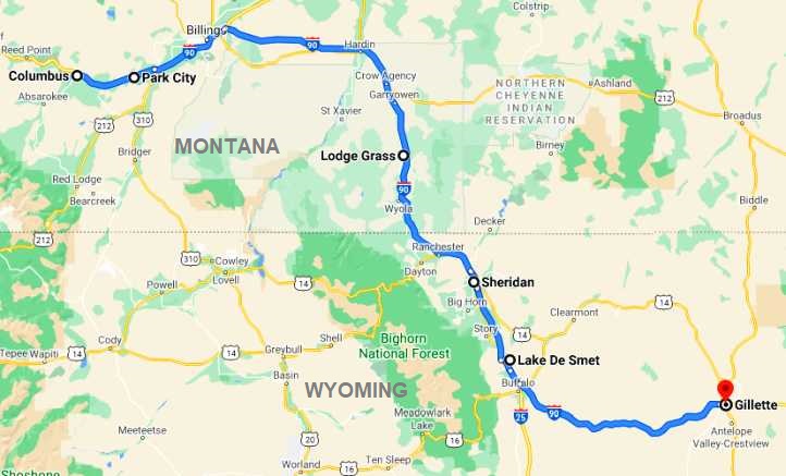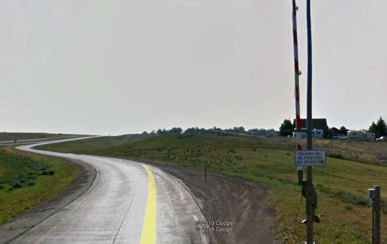 It was nearly dark as I arrived in Gillette, I found a McDonalds to use their wi-fi then drove around looking for somewhere to camp. As I looked around the town I had a look at the boom gates that are there to stop the traffic flow on the Interstate when the snow is bad.I didn't get a photo, but Google Earth did...