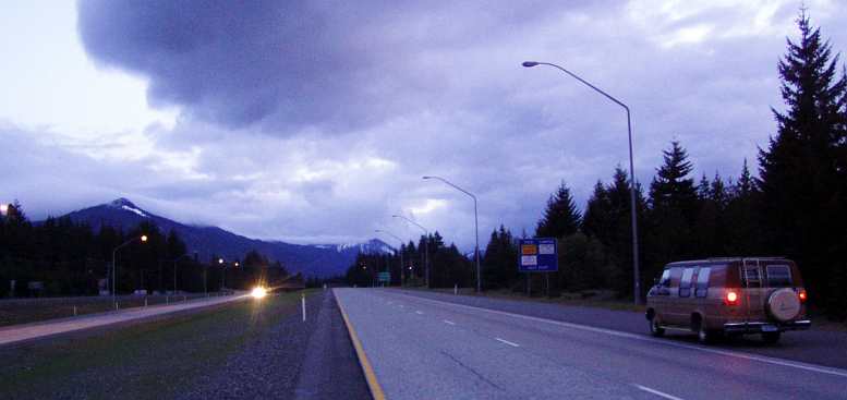 On we drive, keeping up a fair pace despite the carburettor problem. We reckoned that it would be okay to stop somewhere about 80 miles before Seattle and we found a Rest Area in just the right spot. There was a lot of trucks and motorhomes already there, but there was still plenty of room for us at Indian John Hill.