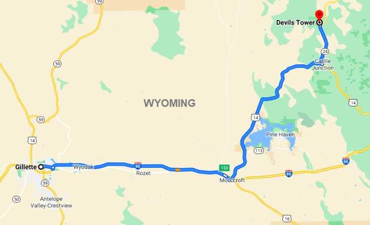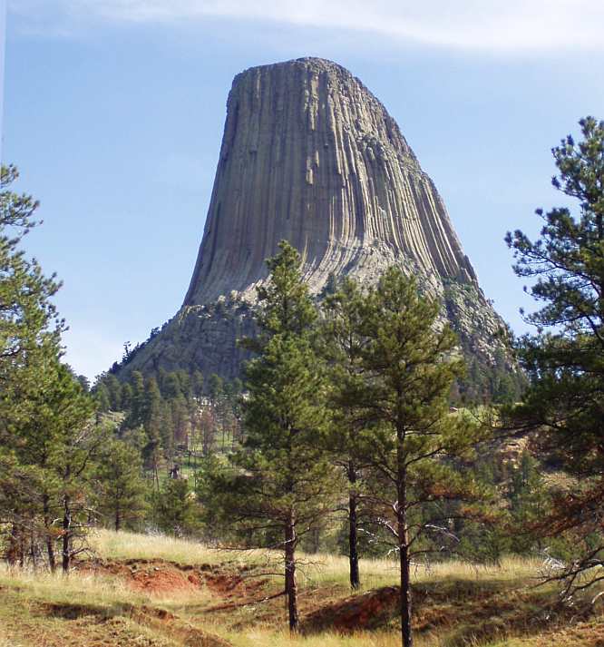 Leaving Gillette I headed for the Devil's Tower. This freak of nature is made up of magma that's somehow been thrust up out of the ground, or within the ground and then everything else has eroded away. The Interstate was still active, but traffic fairly light...